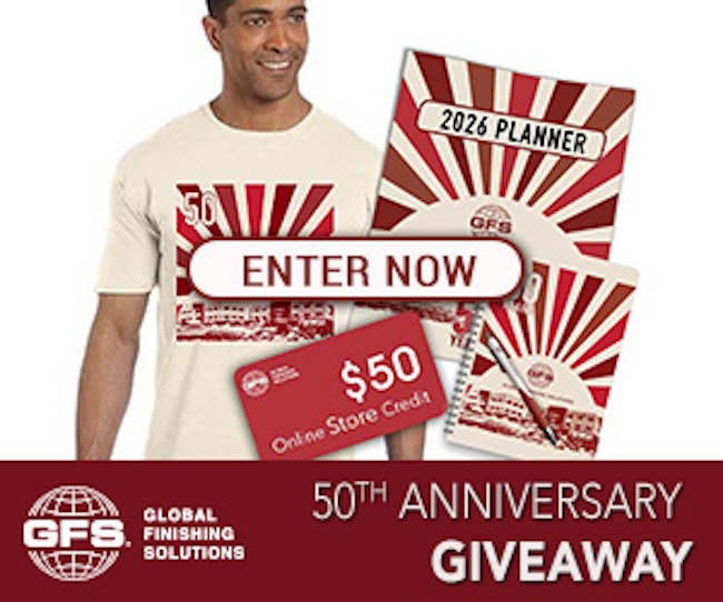 Global Finishing Solutions (GFS) is celebrating five decades of innovation and excellence by giving you a chance to win one of five 50th anniversary prize packs. Each winner will receive a swag bag — featuring a GFS 50th anniversary T-shirt, notebook, planner and pen — along with a $50 credit to the GFS online shop for paint booth accessories. The giveaway runs through Oct. 15, 2025.