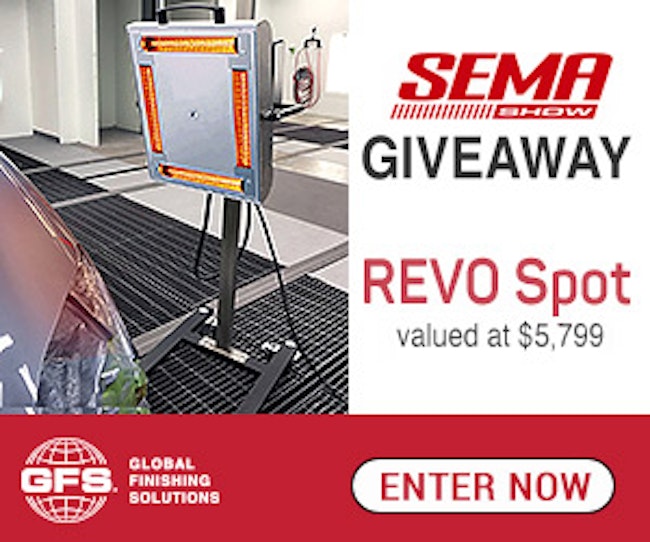 | | | | | | Sponsored | | From GFS Global Finishing Solutions In celebration of the SEMA Show, Global Finishing Solutions (GFS) is giving away a REVO Spot accelerated infrared curing system. Valued at $5,799, this portable tool cuts primer cure times from hours to minutes, boosting throughput and productivity. Easy to roll into any paint booth or prep station, it’s the ideal solution to quickly cure small, 3-by-3-foot areas. Enter to win by Nov. 7, 2025. |