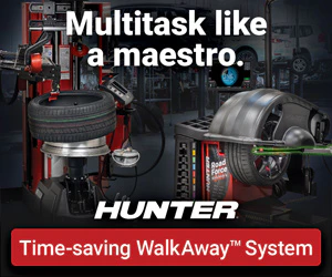 Hunter Engineering has paired the new Road Force® WalkAway™ wheel balancer with the standard-setting Revolution™ tire changer to reduce door-to-door four-tire changeover times by up to 44%. This new autonomous WalkAway™ System automatically releases the balancer’s inflation chuck when completed and performs the spin as the tech attends to other tasks.